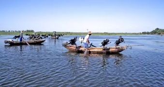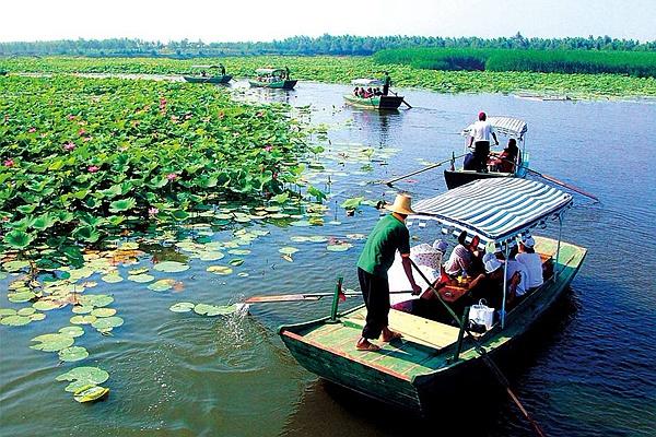 摇橹欢歌嘻笑中,游船拐进农家院。