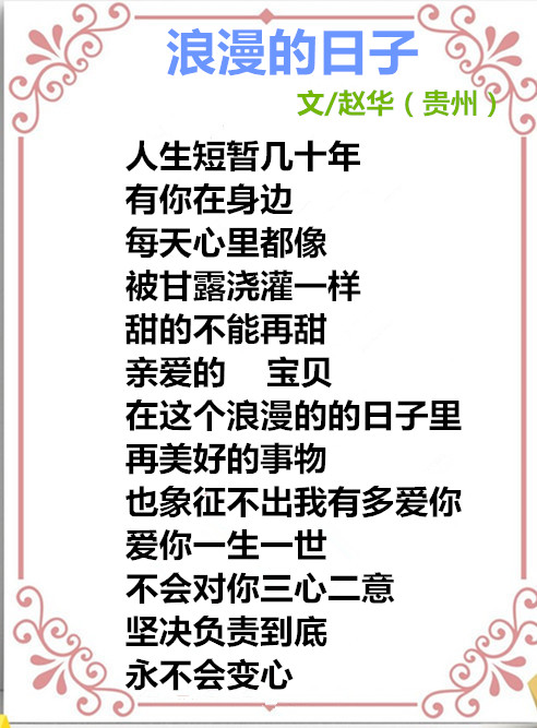 《浪漫的日子》作者: 赵华【大众原创诗词曲网刊】签约作家