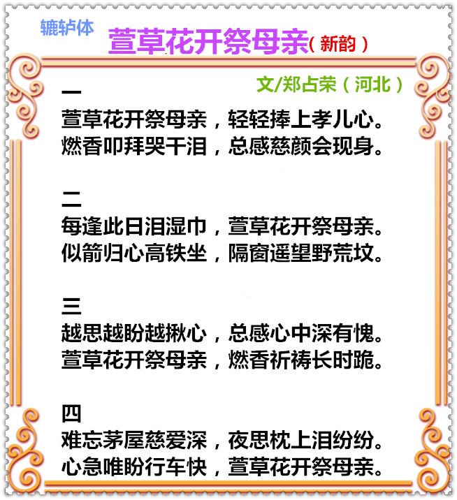 《萱草花开祭母亲》作者: 郑占荣【大众原创诗词曲网刊】签约作家