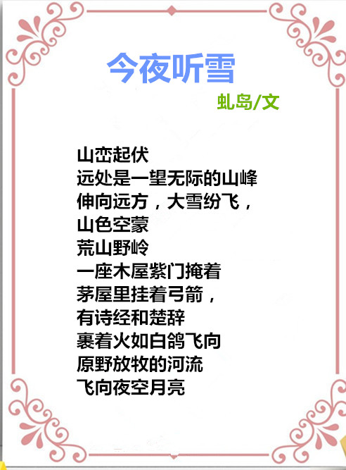 《 今夜听雪》作者: 虬岛【大众原创诗词曲网刊】签约作家
