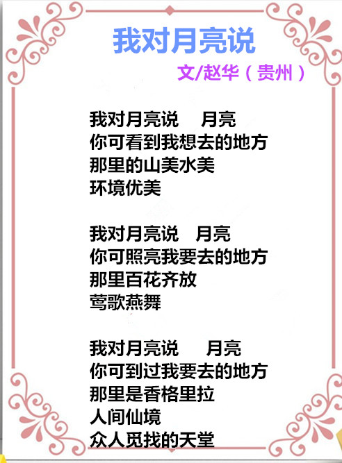 《我对月亮说 》作者: 赵华【大众原创诗词曲网刊】签约作家