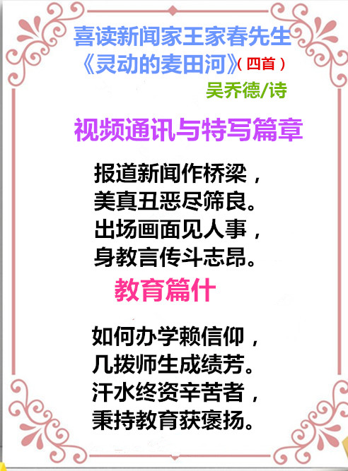 《喜读新闻家王家春先生《灵动的麦田河》》作者: 吴乔德【大众原创诗词曲网刊】签约作家