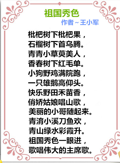 《祖国秀色》作者:王小军【大众原创诗词曲网刊】签约作家