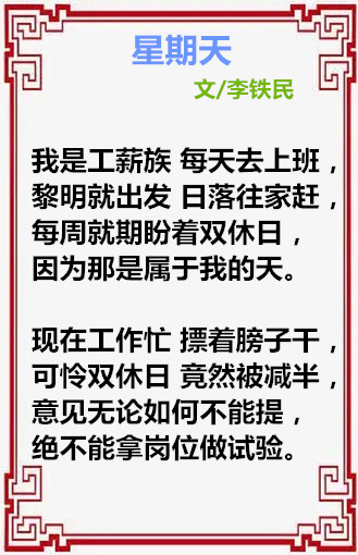 《星期天》作者:李铁民【大众原创诗词曲网刊】签约作家