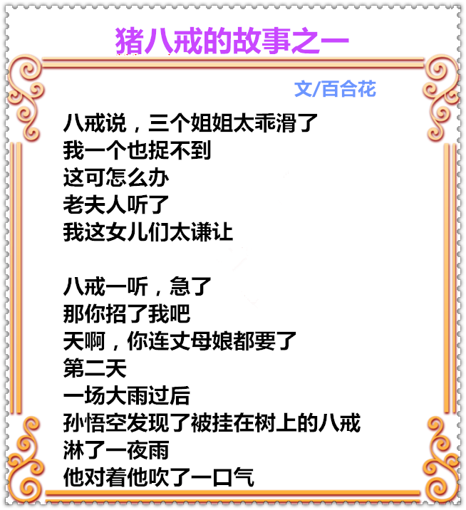 《猪八戒的故事之一》作者:百合花【大众原创诗词曲网刊】签约作家